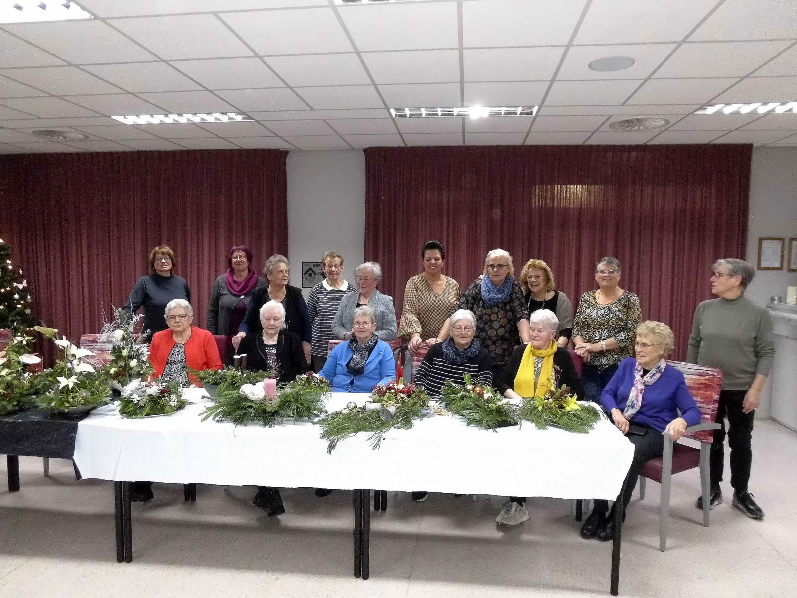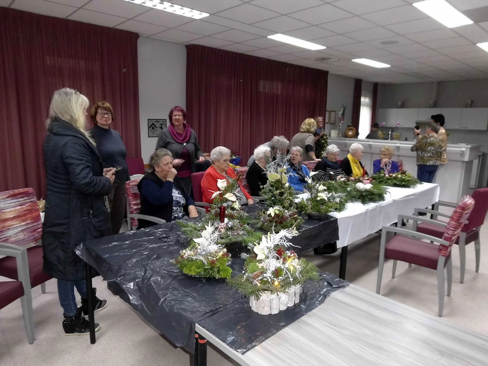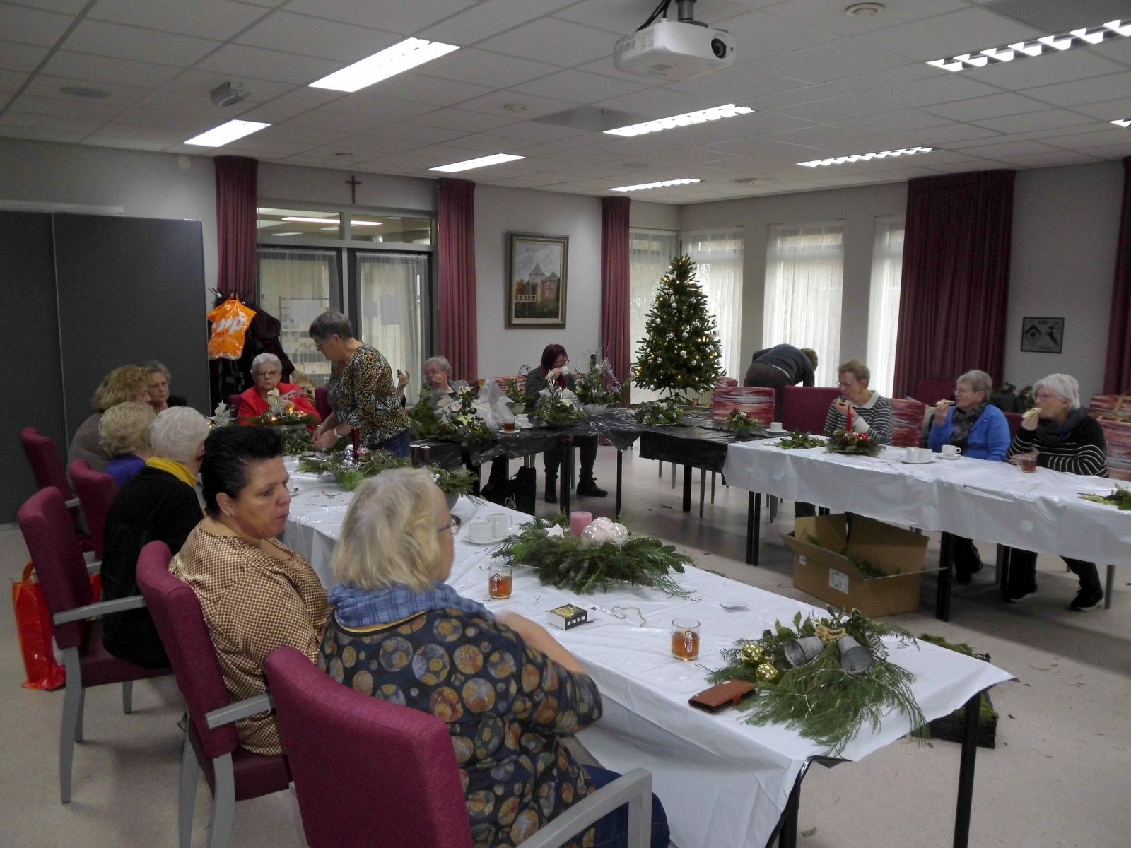 In de maand december voorafgaand aan Kerst was er weer bloemschikken. Er waren 15 dames die zich opgegeven hadden. Onder leiding van Martha Wilmer werden er weer mooie bloemstukken gemaakt. Hierna was er nog een gezellig samenzijn met koffie of thee en kerstbrood waarna iedereen tevreden huiswaarts ging.
