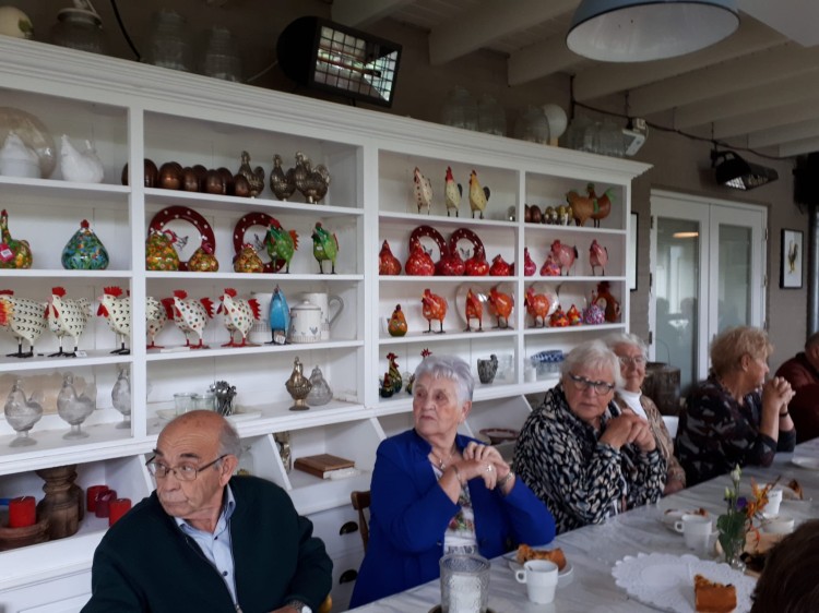 Voor beide finalisten had Conny nog een leuke prijs (advocaat) in petto. Voor de echte kippen liefhebbers was er nog een bezoekje mogelijk in het leuk ingerichte nostalgische winkeltje waar ook de kip centraal stond. Om 16.30 uur werd de bus met enige geronk weer opgestart om via een leuke toeristische route richting Baarlo te rijden waar om 18.00 uur aangeschoven kon worden voor een heerlijk etentje verzorgd door het team van John Habets.