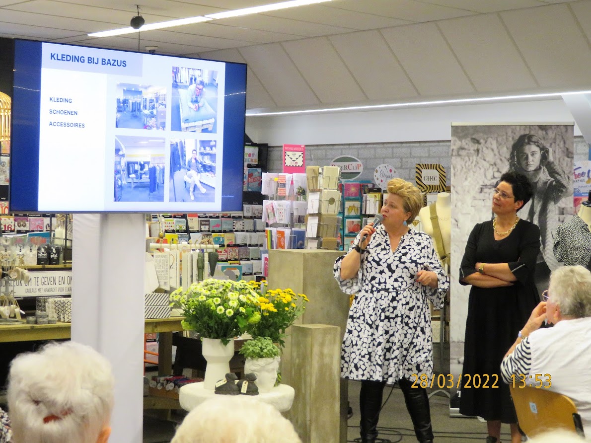 Op maandag 28 Maart jl. stond eindelijk het bezoek bij Bazus Baarlo op het programma dat reeds 2 jaar geleden was gepland , maar steeds uitgesteld werd vanwege de coronapandemie. De deelnemende KBO-leden, een 50-tal, werden vriendelijk ontvangen met een kop koffie of thee. Daarna kregen zij uitleg via een power point presentatie over 15 jaar Bazus door Anja en Gerdie. In 2006 zijn zij gestart met Bazus. De naam van de zaak is een samensmelting van ‘Baarlo’ en ‘zussen’. Bazus heeft inmiddels een ruim assortiment aan woondecoratie, lederwaren en kleding.