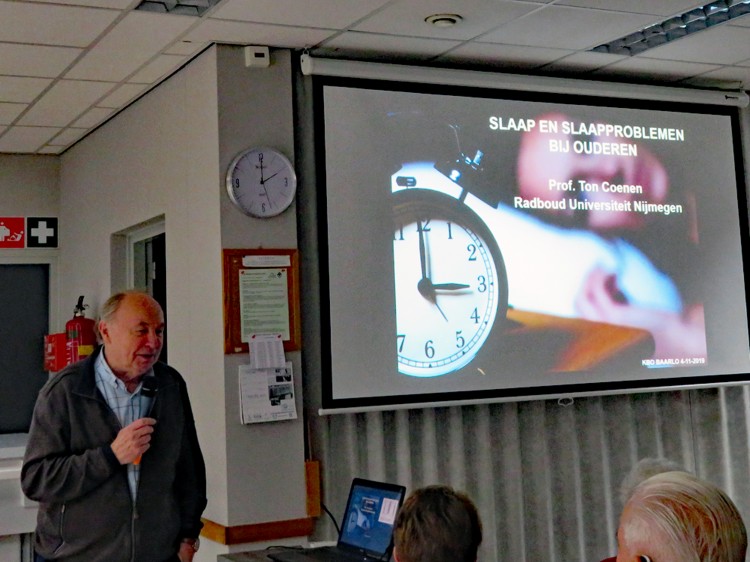 Maandag 4 november jl. gaf oud-Baarlonaar prof. Ton Coenen in een tot de nok gevuld Paedje een in duidelijke taal gebrachte presentatie over slapen en slaapproblemen bij met name ouderen. Wanneer krijgen we slaap en wat gebeurt er in ons brein waardoor we slaap krijgen en wat als we slapen. Slaapproblemen die bij ouderen voorkomen, hoe ze kunnen ontstaan en hoe ze kunnen worden tegen gegaan. Het was een zeer interessante presentatie op z’n tijd gevuld met enige humor.